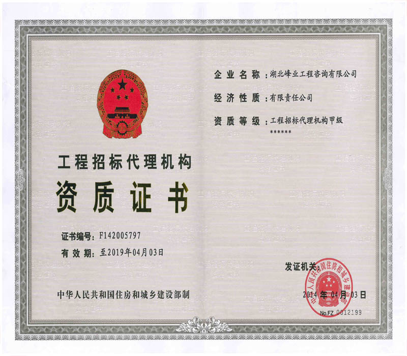 工程招標(biāo)代理甲級(jí)資格證書(shū)